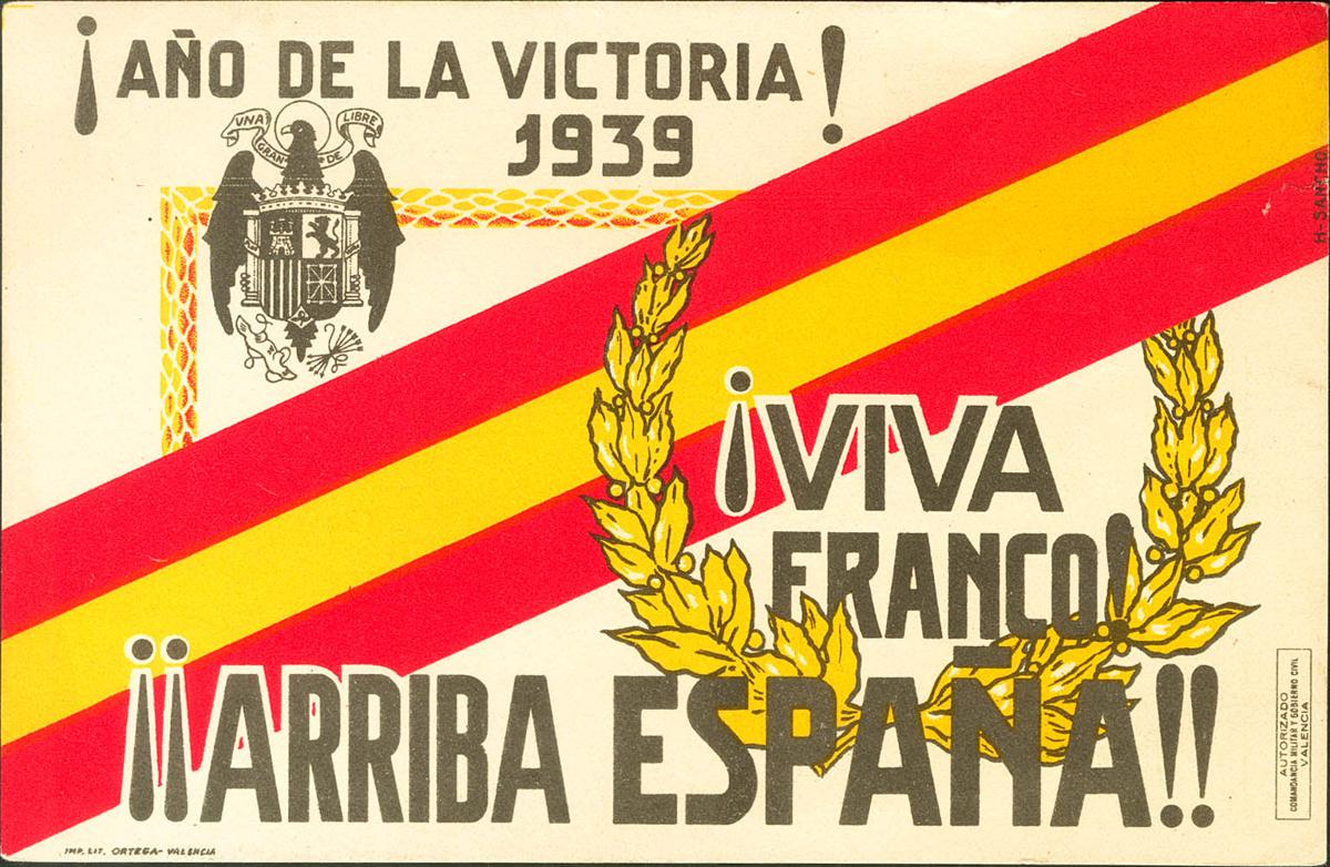 (★)1939. Postal Card of the Military Command and Civil Government of Valencia YEAR OF THE VICTORY 1939. MAGNIFICENT AND RARE.