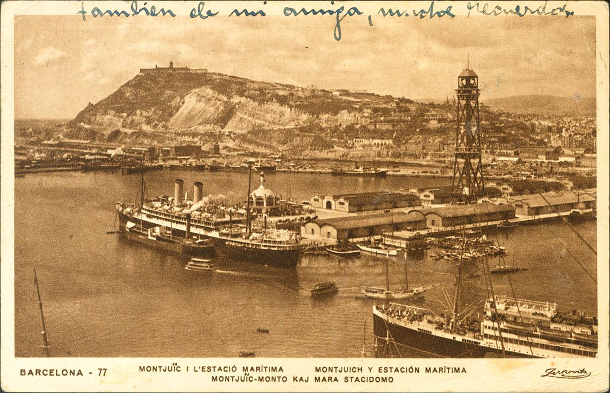 683(2). 1936. 15 slate gray cts, two stamps. Postcard from BARCELONA to FRANKFURT (GERMANY). Postmark ANTI-FASCIST MILITIA COMMITTEE / DEPARTMENT OF INVESTIGATION / INTERVENTION OF CORRESPONDENCE / BARCELONA, in purple. MAGNIFICENT.