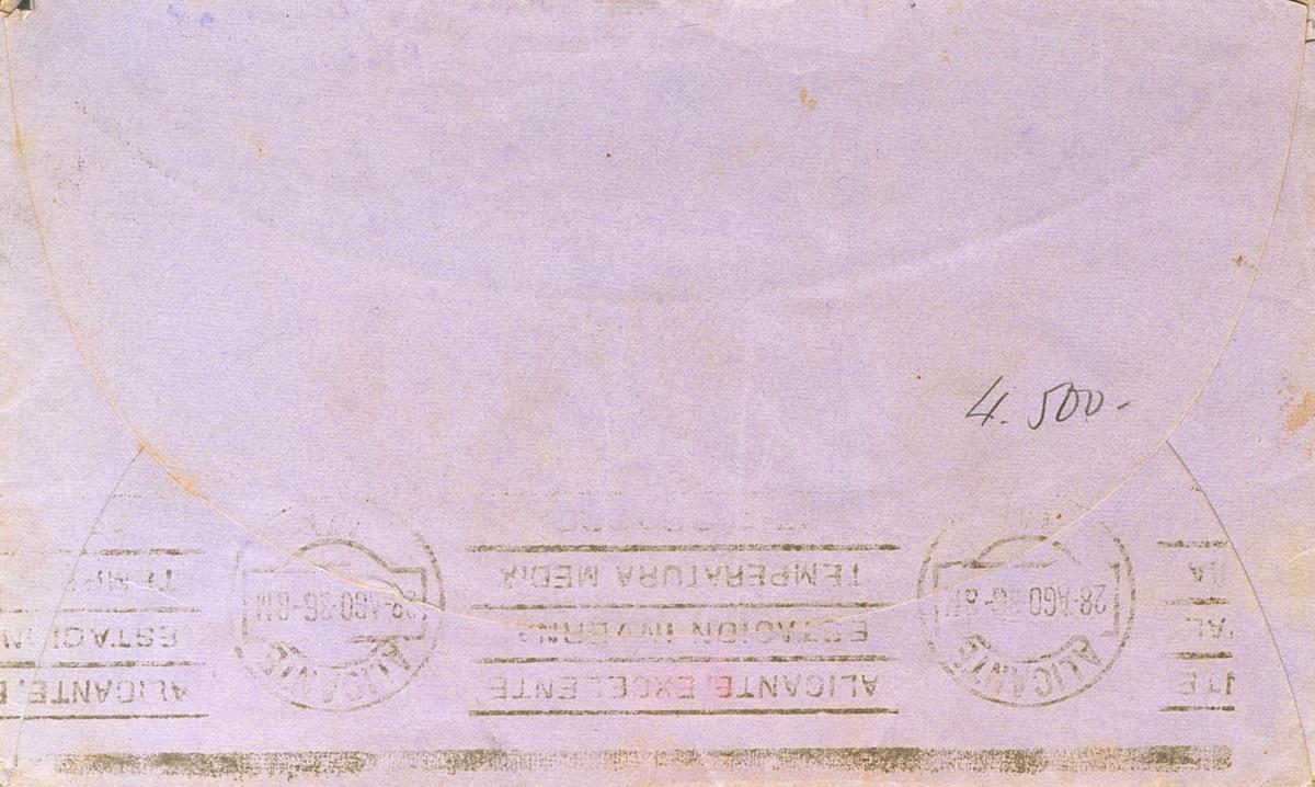 1936. IZNALLOZ (GRANADA) to ALICANTE. Handwritten annotation "Forces Loyal to the Government of the Republic" and mark AGRUPACION SOCIALISTA / IZNALLOZ (GRANADA), in violet and arrival on the back. MAGNIFICENT AND RARE.