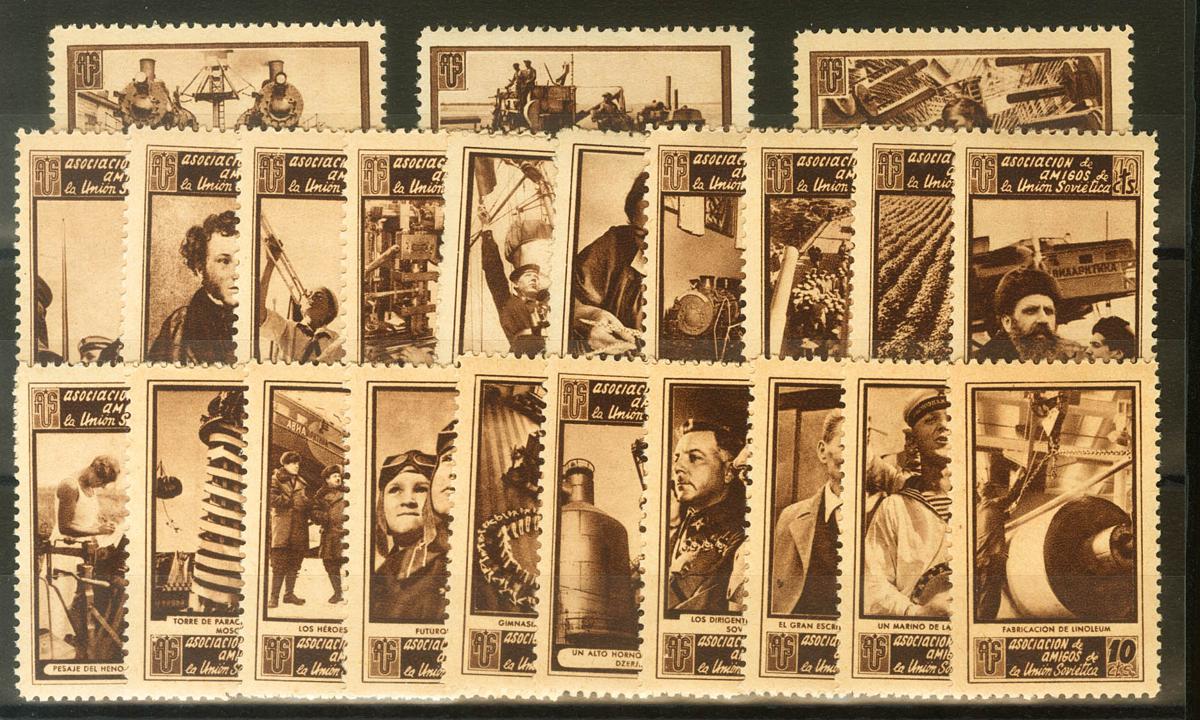 ★★/★1937. Complete series, fifty vignettes, in sepia. ASSOCIATION OF FRIENDS OF THE SOVIET UNION. MAGNIFICENT AND RARE. (Guillamon 1689/38A)