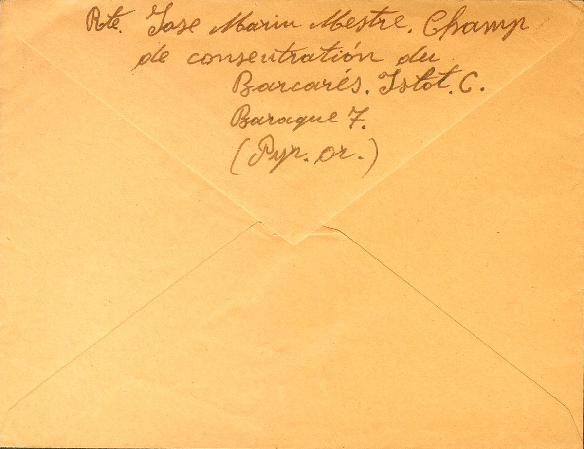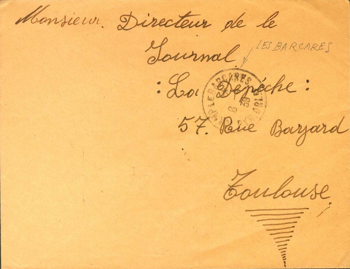English 1939. LE BARCARES in TOULOUSE. Dater CAMP LE BARCARES / PYR.ORLES. MAGNIFICENT AND RARE WITHOUT BEING APPRAISED.
