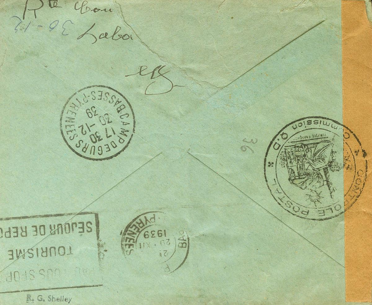 1939. Blue 90 cts from France, surcharge F. PAVIE to GURS, sent from the "Lacavant de Pavie" Camp, which according to the data consulted, was an accommodation center for Spanish refugee children and addressed to a Spaniard interned in the Camp of Gurs. On the back arrival. MAGNIFICENT AND VERY RARE, CIRCULATED BETWEEN TWO DIFFERENT REFUGEE CAMPS.
