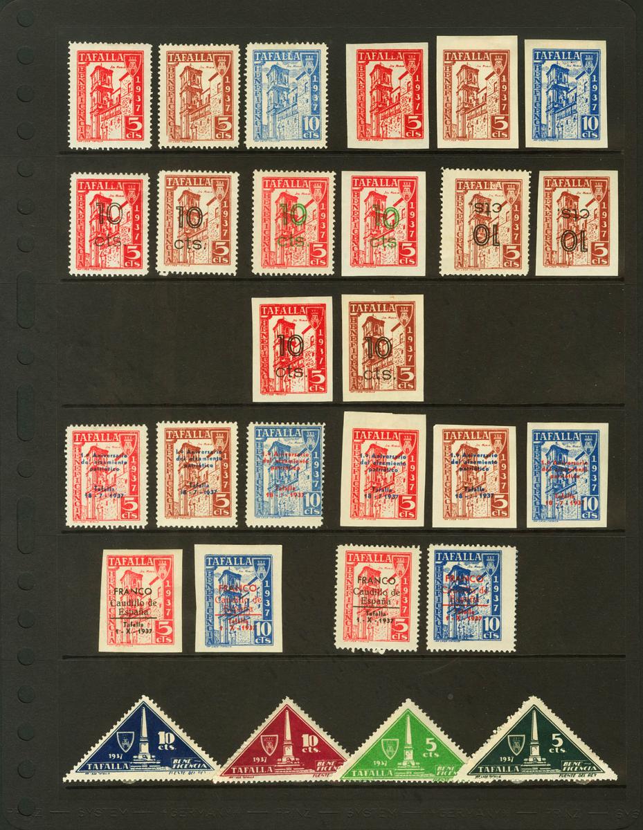 ★★/★(1937ca). Interesting collection of the Local issues of Tafalla with numerous varieties of serrations and overloads, including mini-sheets and full sheets, some without serrations, as well as block sheets (some postmarked). TO EXAMINE.