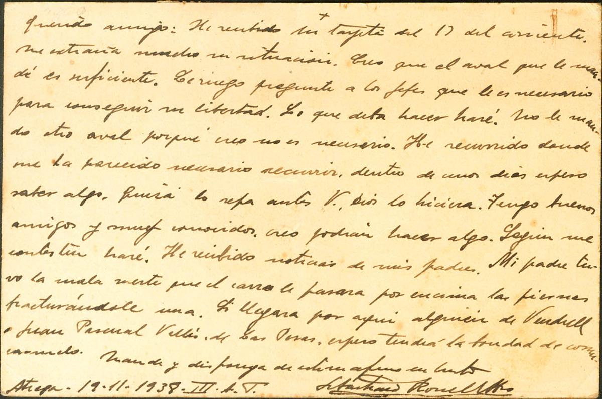 EP81. 1938. 15 cts purple on Stationery Card from ATIEGA (ALAVA) to SANTANDER, with additional postage of 5 cts brown, addressed to an inmate of the La Magdalena Concentration Camp, located in the complex of the Stables of the Palacio de la Magdalena and which was in operation until November 1939. Postmark SALINAS DE AÑANA / (ALAVA). MAGNIFICENT AND RARE.