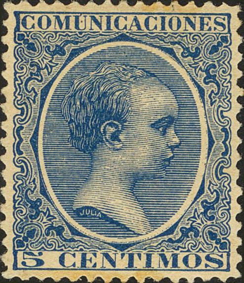 ★ 215. 1889. 5 cts blue. Excellent centering and intense color. LUXURY PIECE.