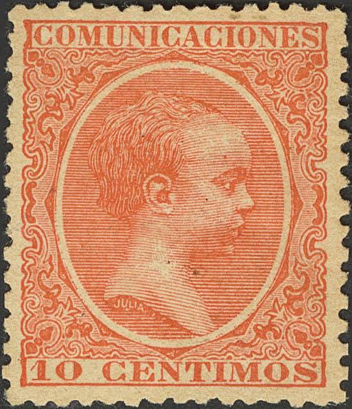 English ★ 218. 1889. 10 vermilion cts. Excellent centering and intense color. LUXURY PIECE. Certificate GRAUS.