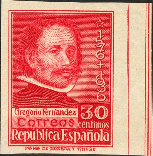 ★★ 726s. 1937. 30 cts carmine, leaf edge. NO TEETH. MAGNIFICENT. Edifil 2023: +44 Euros