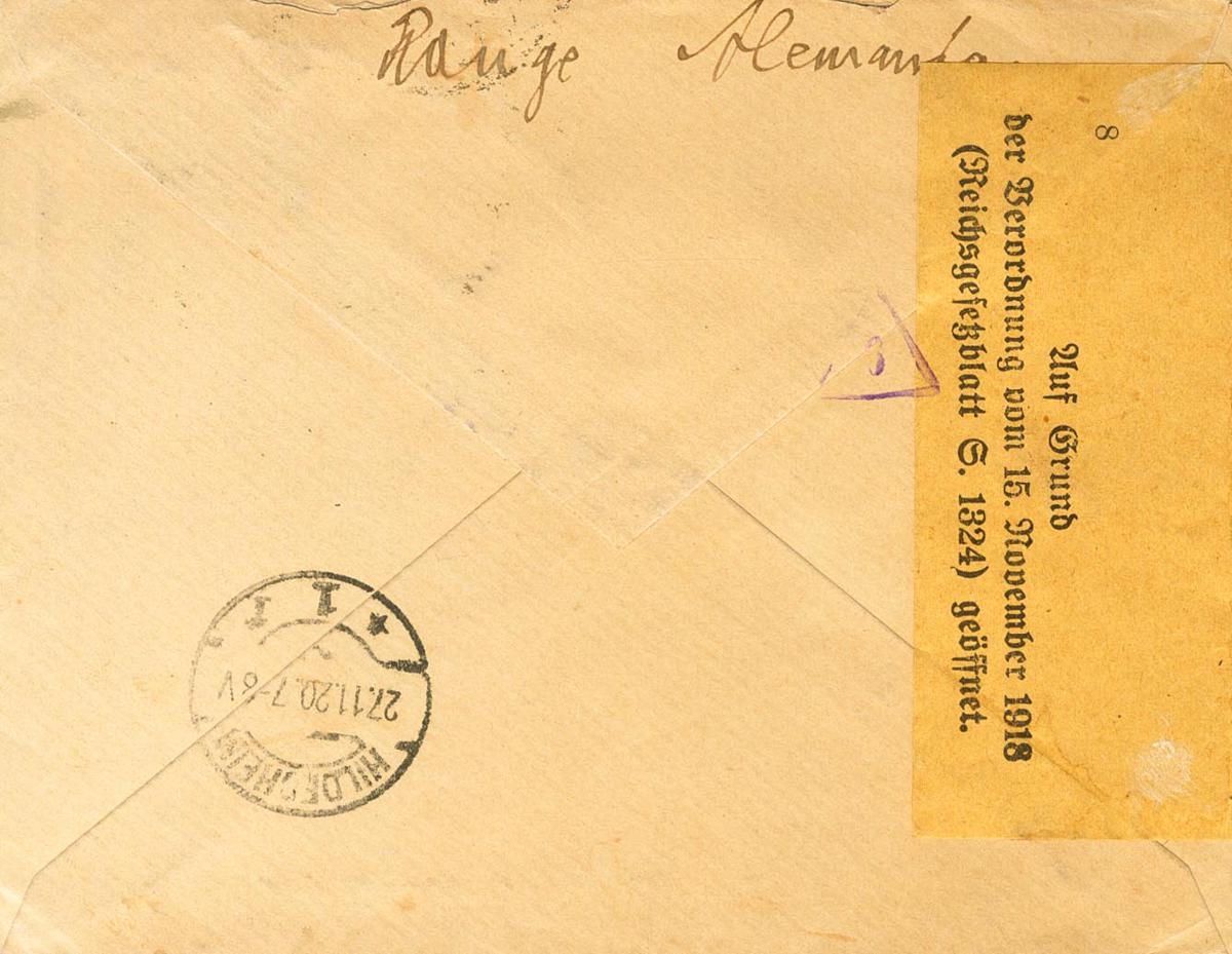 English 306. 1920. 50 cts blue. Certificate from MADRID to HILDESHEIM (GERMANY). On the back arrival. MAGNIFICENT.