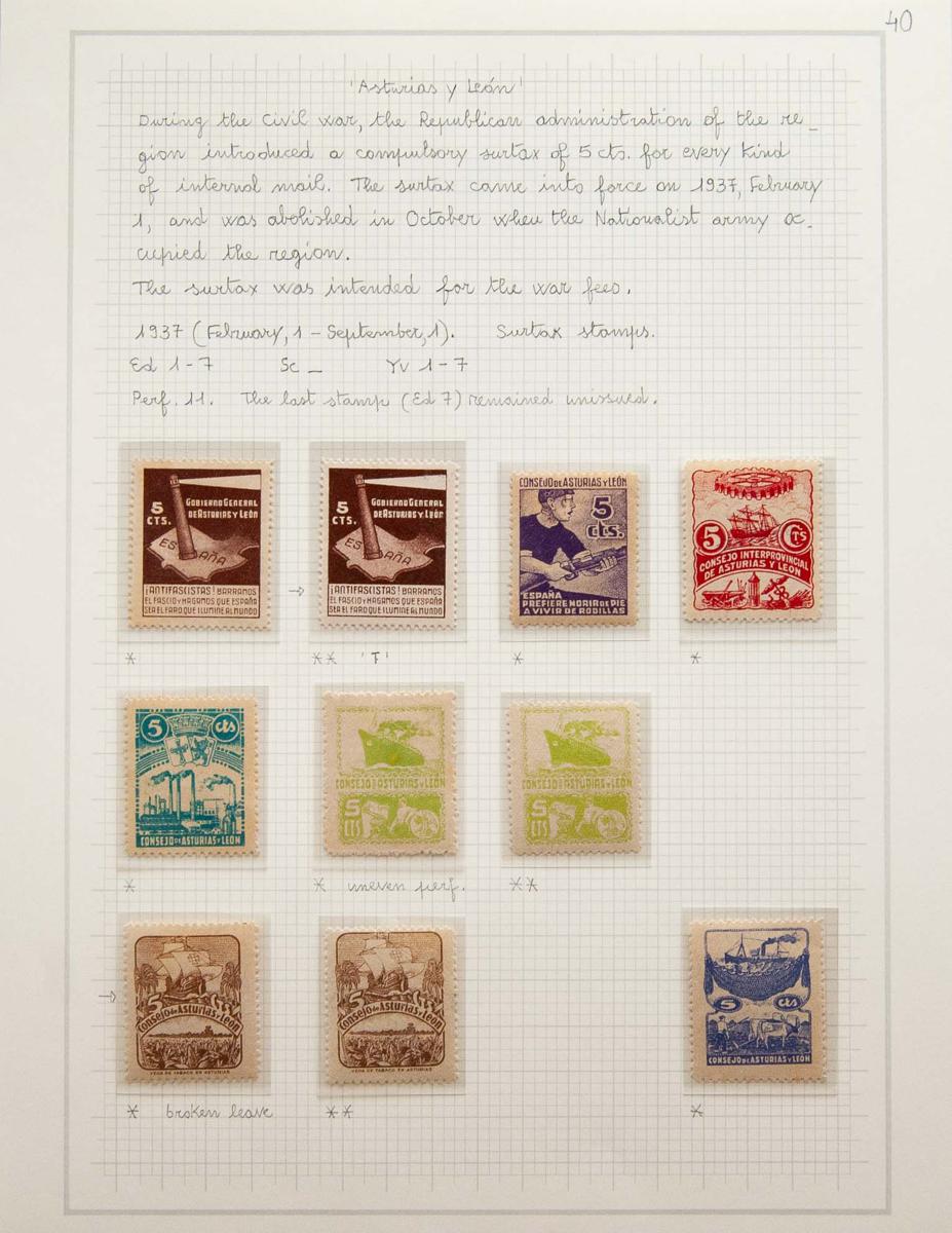 ★★/(★)(1936ca). Very interesting and precious collection from Asturias and León, including the vast majority of the issues, as well as some of the NON-ISSUES and a small set of varieties, as well as five very interesting cards. MAGNIFICENT SET.