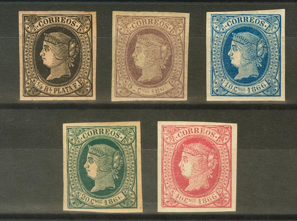English ★/(★) 12, 13/16. 1866. ¼ real black and complete series. MAGNIFICENT. Edifil 2023: 130 Euros