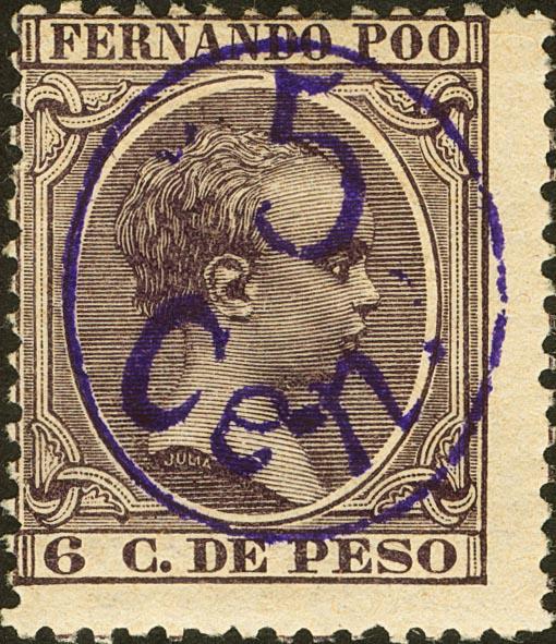 ★ 40Chcc. 1896. 5 cts over 6 cts violet. CHANGE OF COLOR IN THE OVERLOAD, in violet. NICE. Edifil 2018: 123 Euros