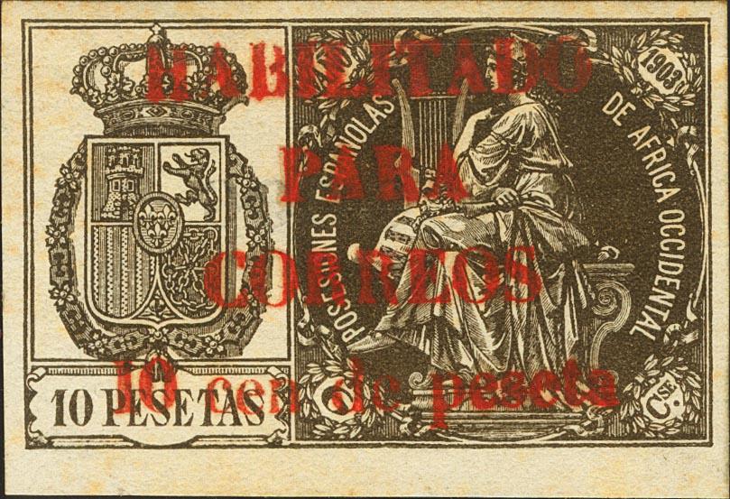 ★ 26P. 1904. 10 cts out of 10 pts chestnut black. MAGNIFICENT AND VERY RARE. Certificate CEM. Edifil 2018: 1,775 Euros