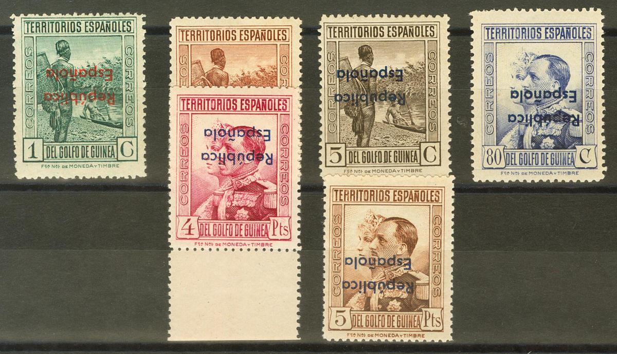 ★ 230/43hi. 1932. Complete series, six values. REVERSED OVERLOAD. MAGNIFICENT AND RARE. Edifil 2018: 617 Euros