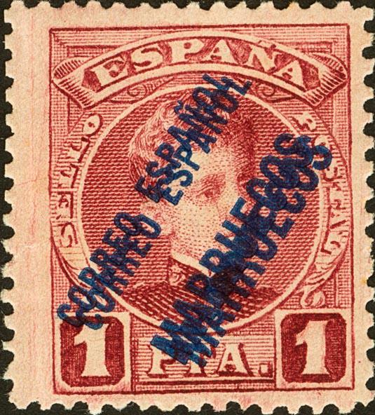 ★ 11 a.m. 1903. 1 carmine pts. DOUBLE OVERLOAD. MAGNIFICENT AND RARE. Edifil 2018: 170 Euros