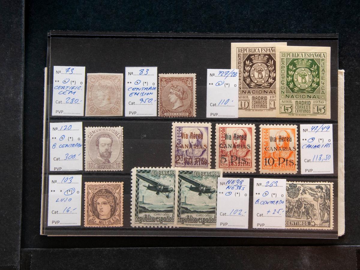 English ★★/★(1865ca). Set of four classic stamps in new, some loose and complete series of the 1st Centenary, in new, highlighting the 2 reales of 1865 new with certificate, 19 cuartos of 1866 new, 10 new Amadeo violet cts and complete series of Sánchez Toda with fixed stamps , a letter from 1855 is included with the first day of use of the Madrid dater on the back and a letter from 1953. TO EXAMINATE. Edifil 2022: +2,100 Euros