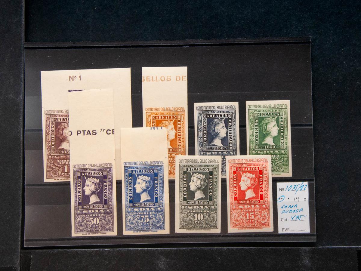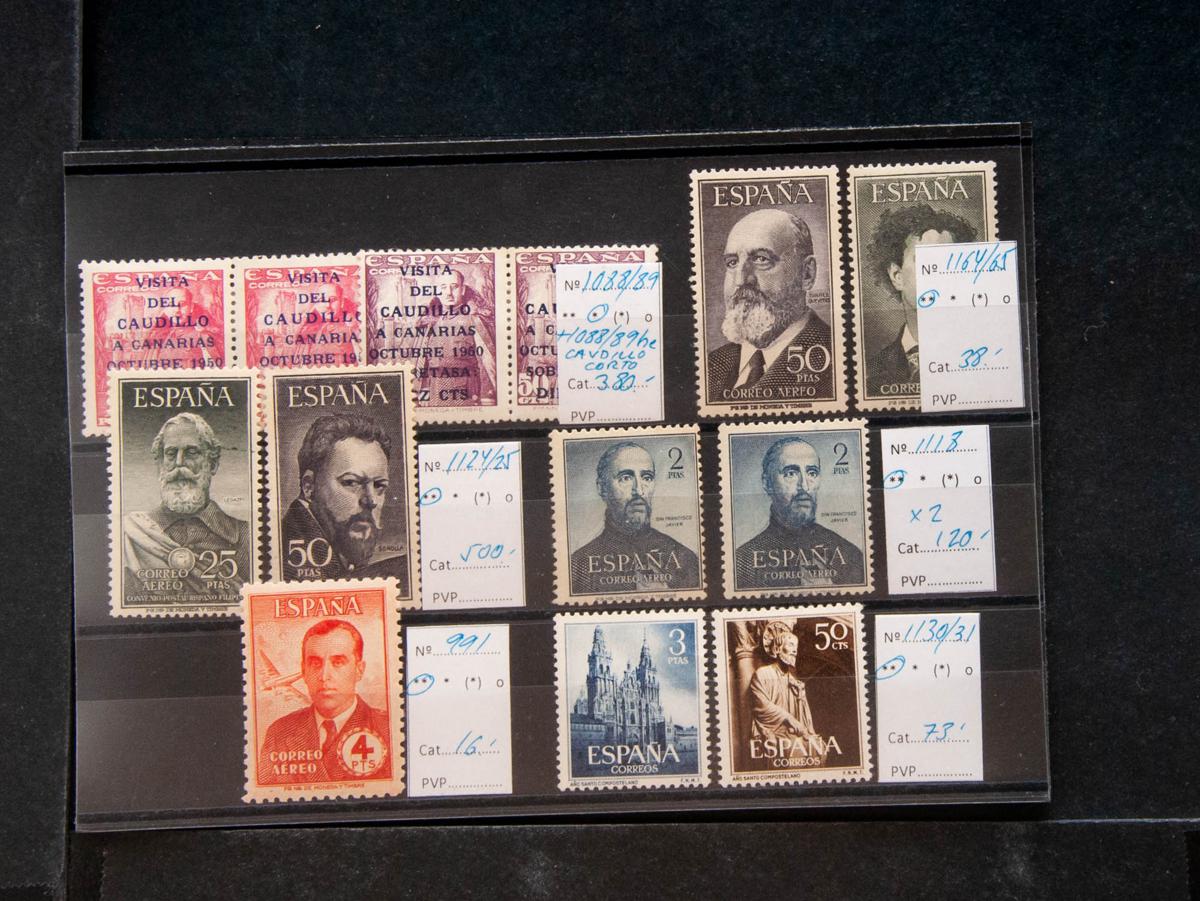 ★★/★(1950ca). Set of complete series between 1950 and 1955, new with and without affixed stamps and highlighting a couple of the Caudillo to the Canary Islands with affixed stamps with the variety "Caudillo Corto", Centenario (dubious rubber) and "Legazpi y Sorolla". TO EXAMINE. Edifil 2023: 1,586 Euros