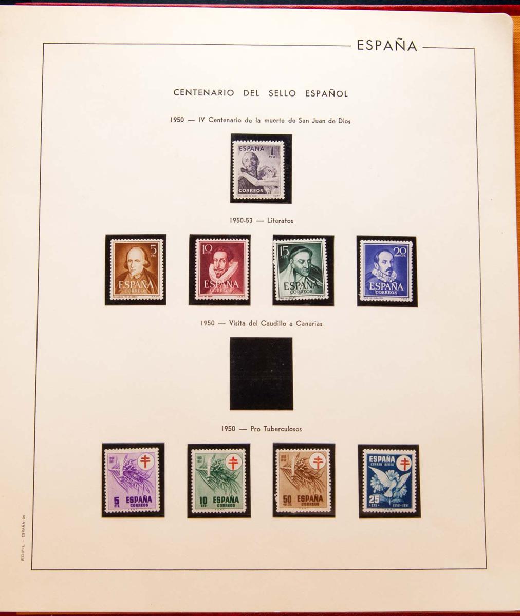 ★★(1950ca). Interesting and complete collection between 1950 and 1999, new and only lacking the Canarias without number and all without fixings (except 50 pts Sorolla) with Brussels pages and some duplicate years, especially from 1991 includes many mini-sheets, also duplicates mostly, in addition to other sections included in a box (very good quality). HIGH CATALOG VALUE. ESSENTIAL TO EXAMINE.