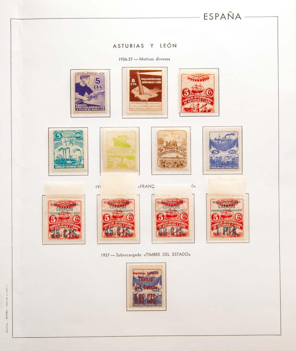 English ★★(1936ca). Complete set of the Asturias and León series, new without fixing, includes Military Franchise stamps of 1893 and 1894, new. TO EXAMINE.