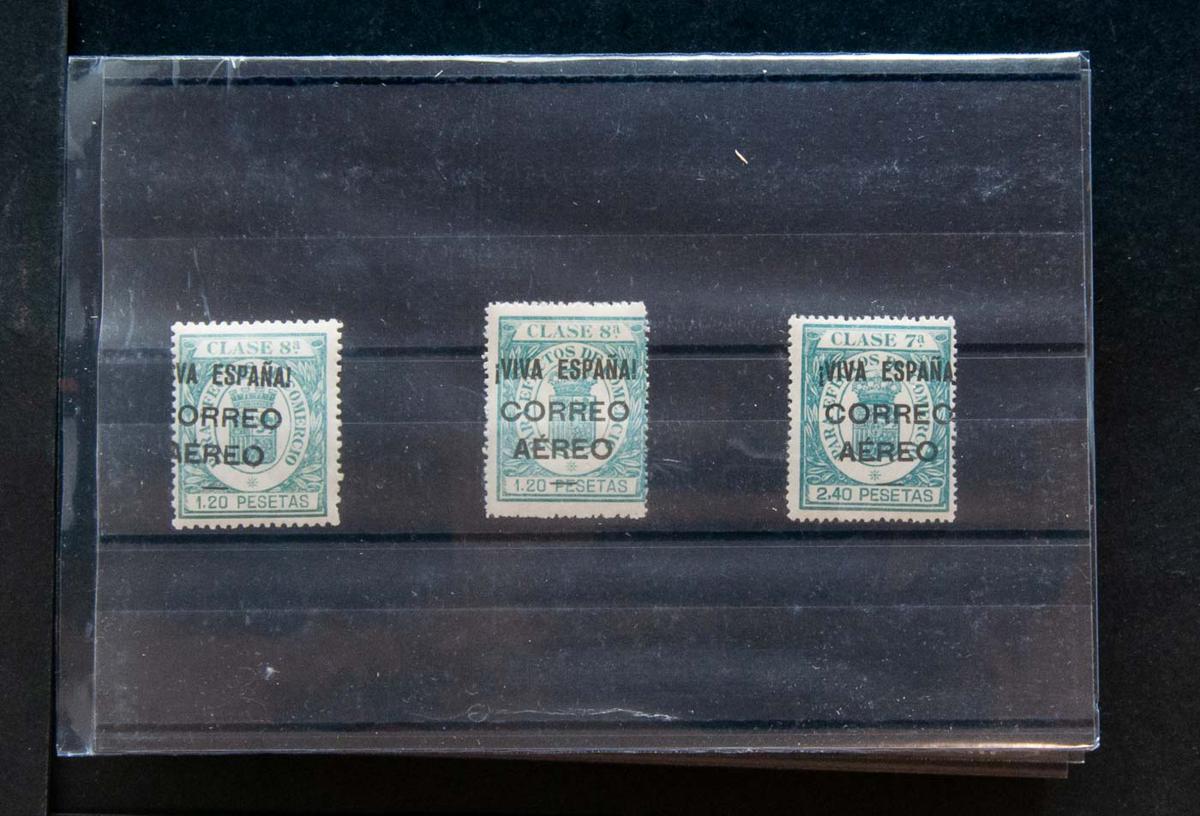 ★★/★1937. Set-stock of Urgent stamps of Burgos and San Sebastián Local Patriotic Issues, as well as some other issues, most of them new without fixing and includes an inverted surcharge (Edifil Nº44hi de Burgos). TO EXAMINE. Edifil 2017: +5,100 Euros