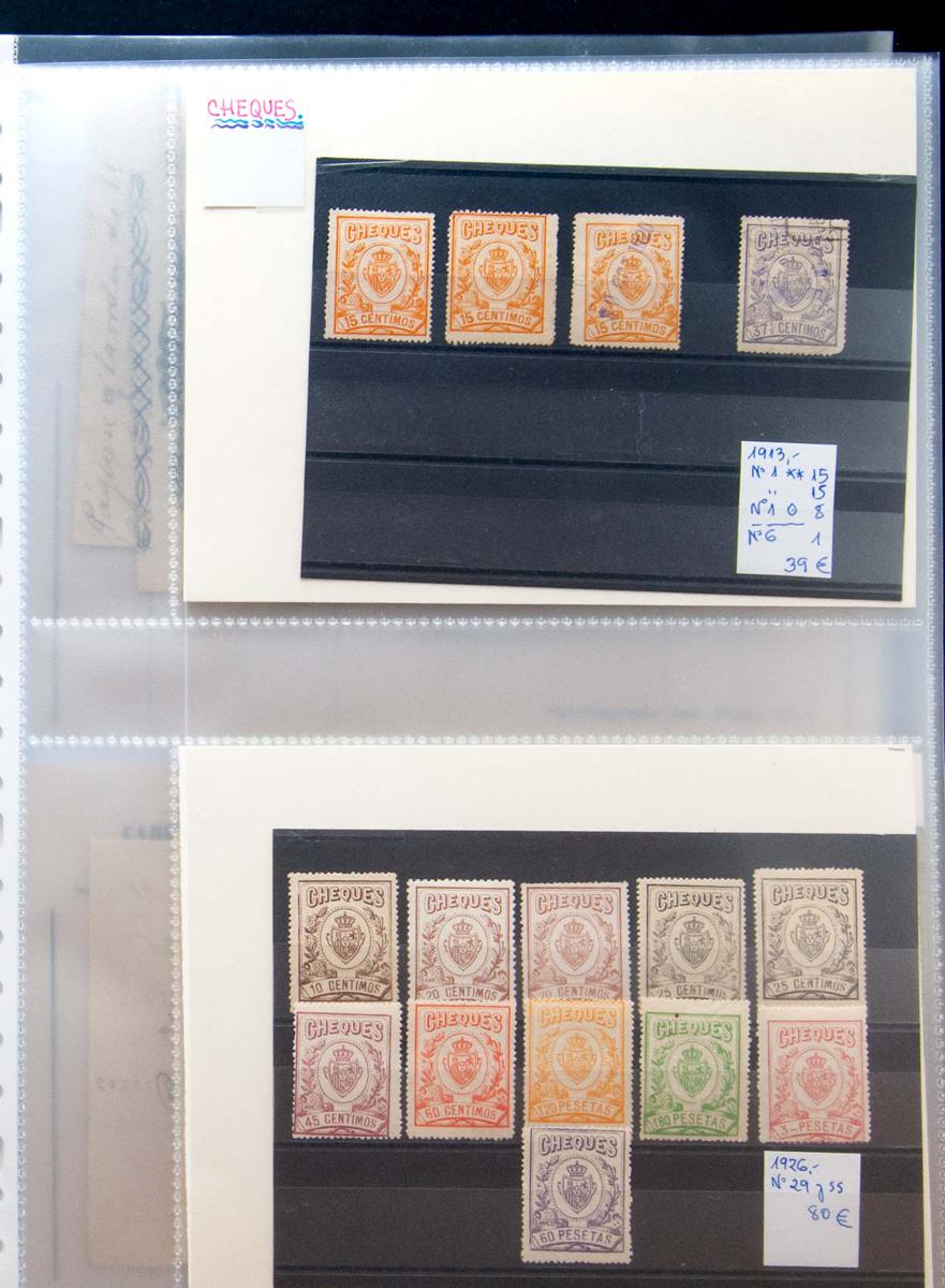 (★)/1913. Interesting set of Check Fiscal Stamps between 1913 and 1926, new and used, including documents, invoices and a letter with stamps from this section. TO EXAMINE.