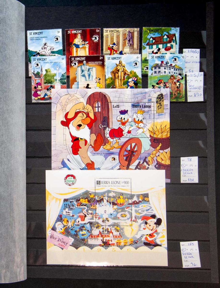★★(1985ca). Spectacular set of complete series and block sheets of the Disney Theme in new (mounted in classifiers and labeled). TO EXAMINE. Edifil 2018: +580 Euros