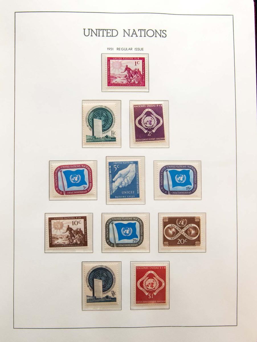 ★★(1951ca). Interesting and very complete United Nations collection between 1951 and 2001, new and without fixing, including the 1955 block sheet and the Geneva and Vienna offices with most of the mini-sheets issued. HIGH CATALOG VALUE. TO EXAMINE.