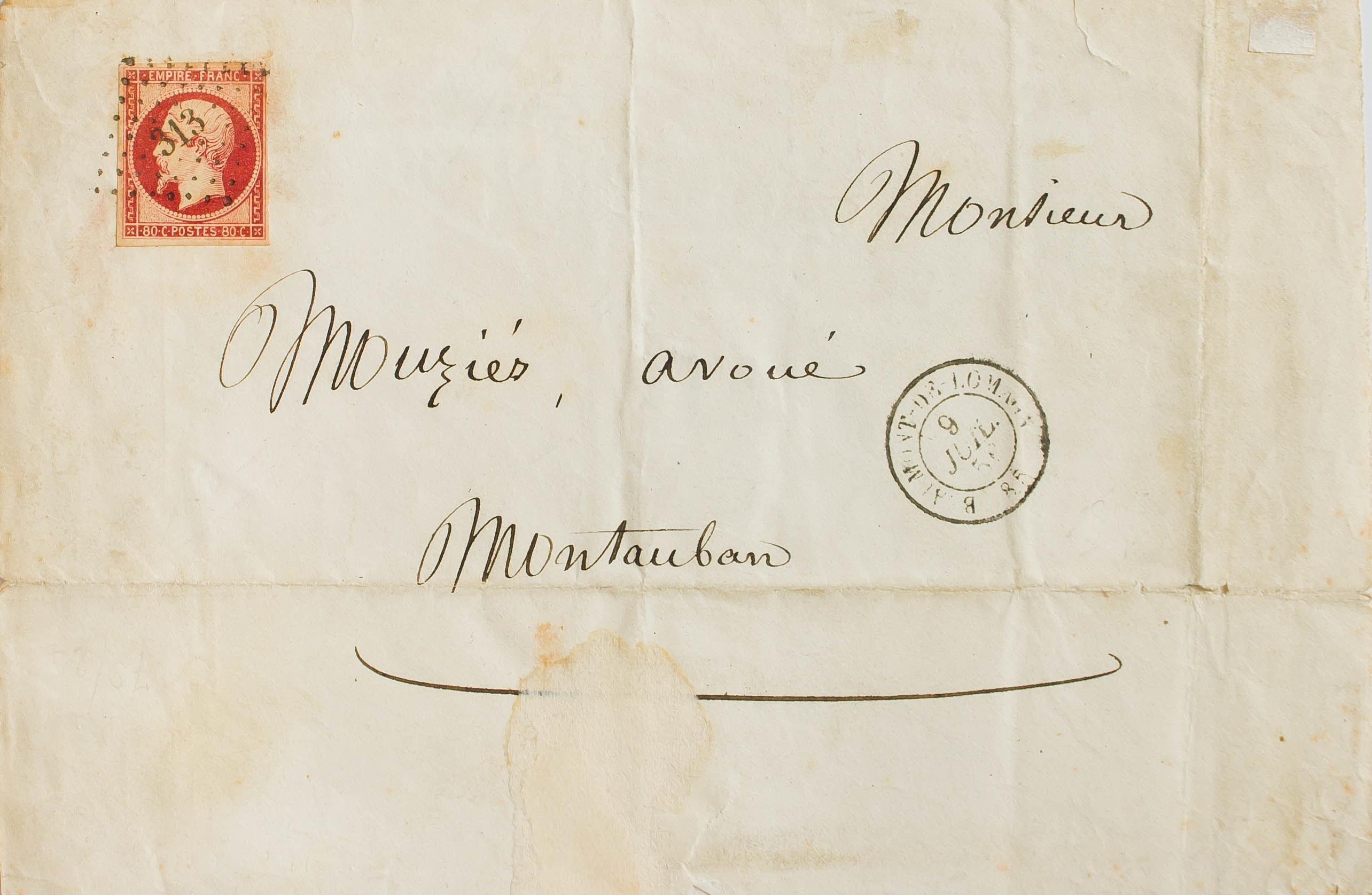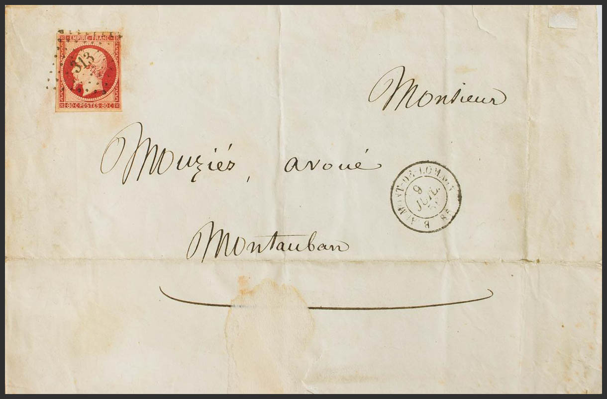 Yvert 17A. 1856. 80 cts carmine (right margin slightly just). BEAUMONT DE LOMAGNE to MONTAUBAN. SMALL RHOMB OF FIGURES Cancellation Nº313. PRETTY.