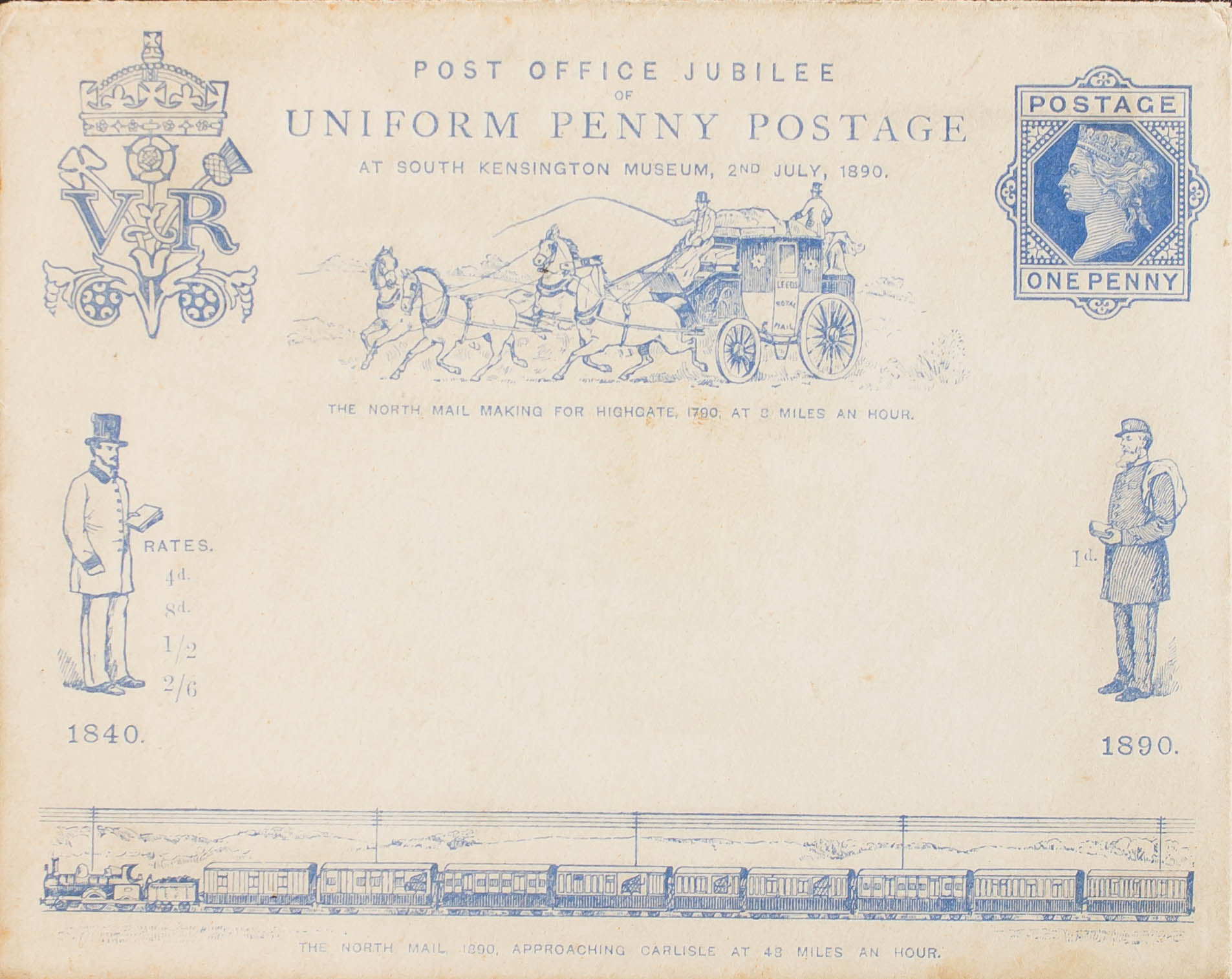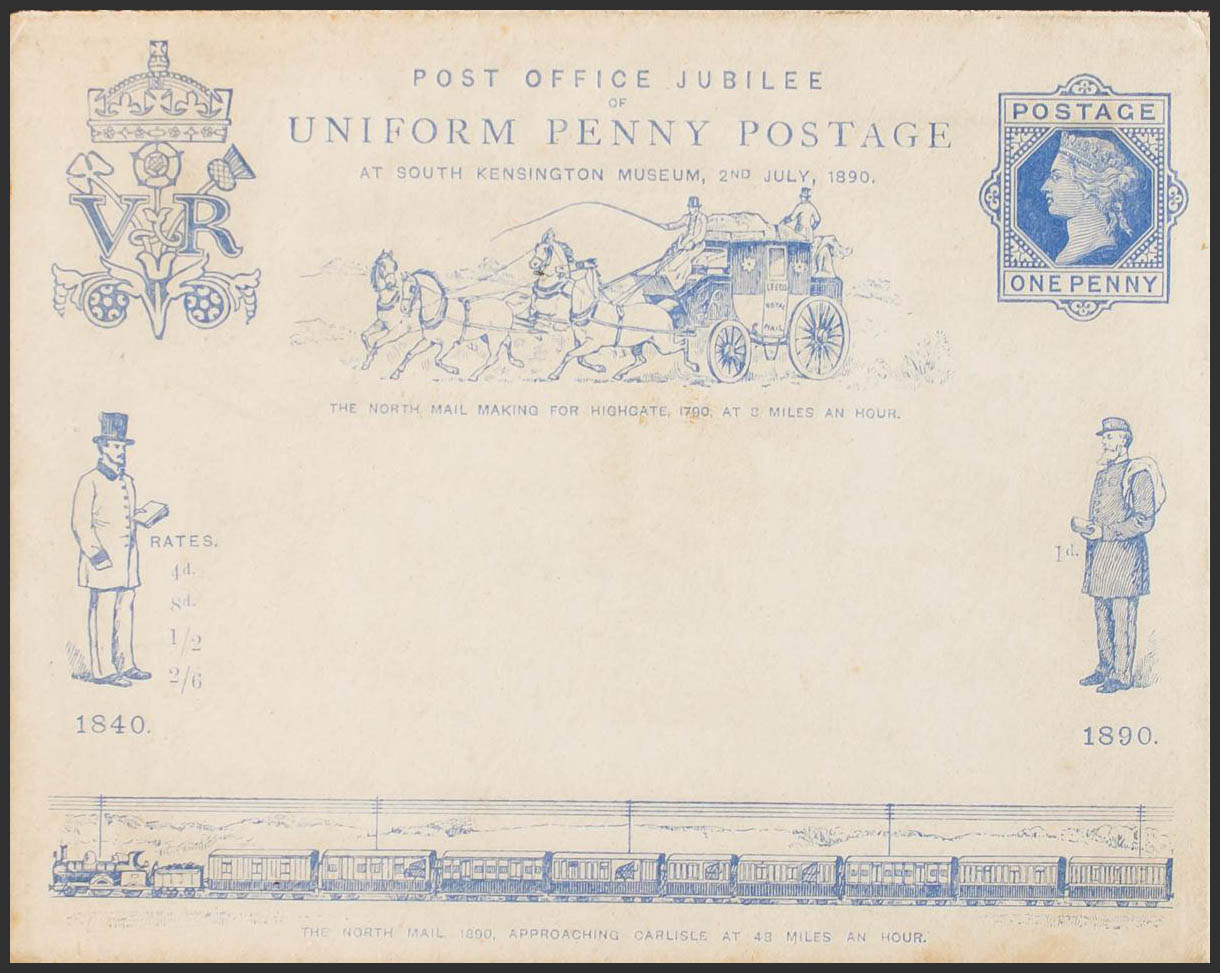 (★)1890. 1 p blue envelope Postal UNIFORM PENNY POSTAGE. MAGNIFICENT.
