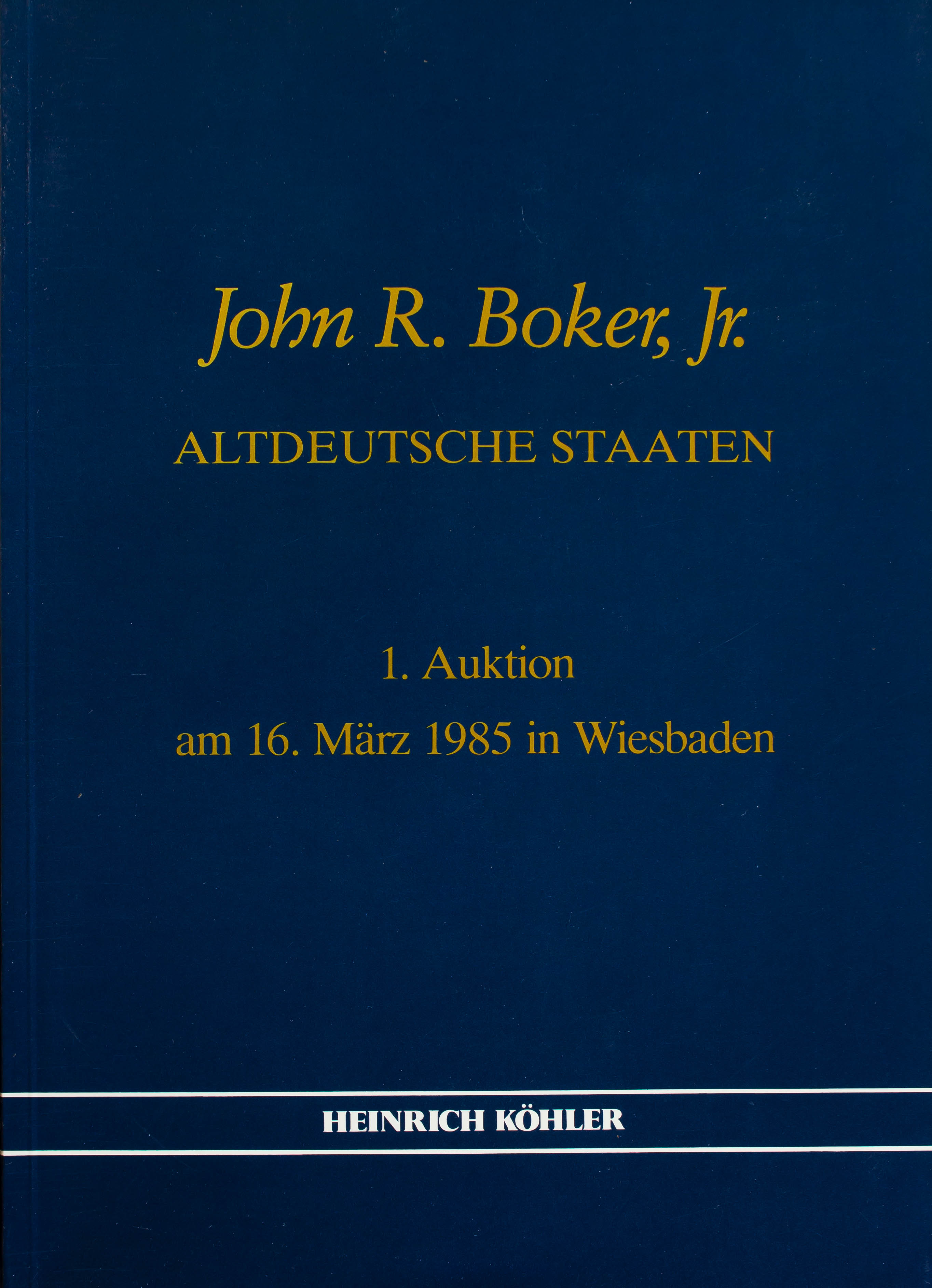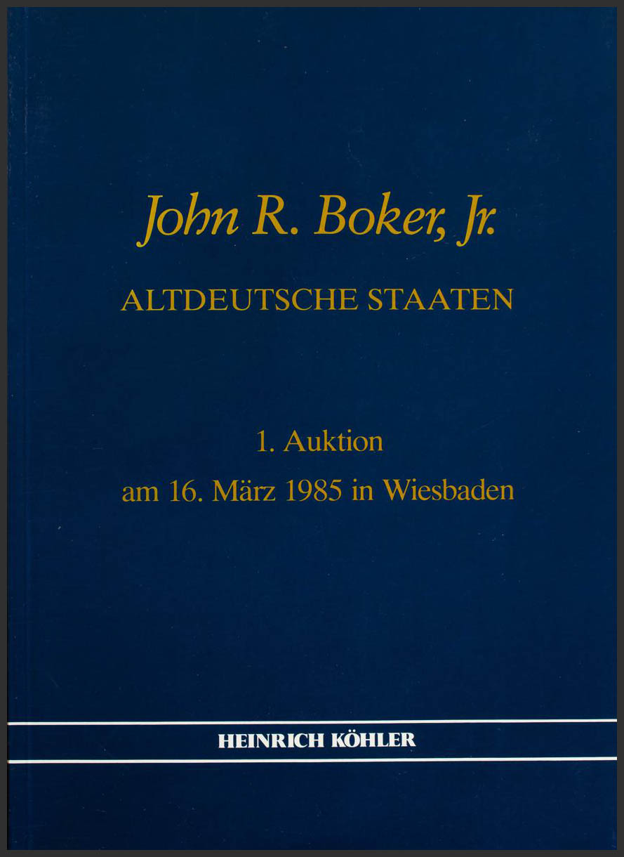 (1985ca). THE JOHN R. BOKER, JR. COLLECTION OF GERMAN STATES. (complete collection of eighteen catalogs of the Kolher Auction, plus the presentation catalogue, in perfect state of conservation "as new"). Wiesbaden, 1985ca.