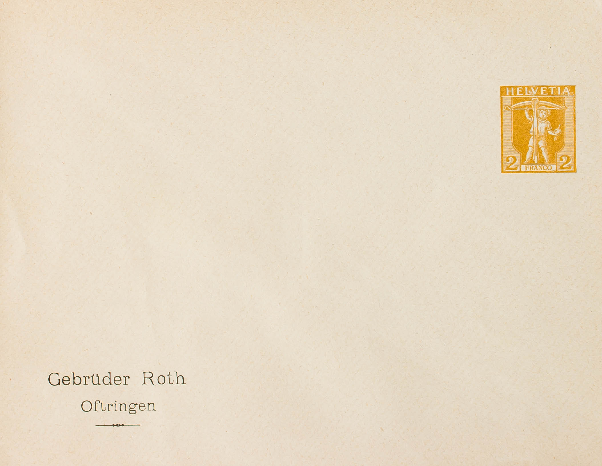 English (★)1907. 2 cts bistre olive envelope Private Postal GEBRÜDER ROTH. MAGNIFICENT.