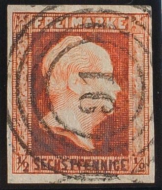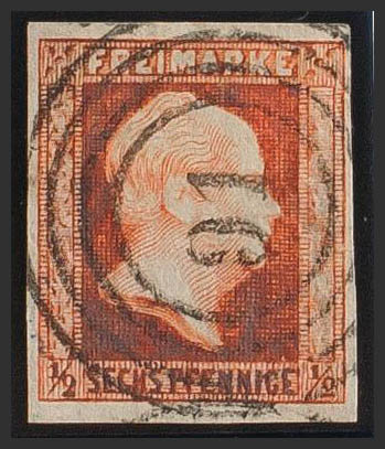 English Yvert 10. 1858. 6 p orange red. Postmark numeral "91". MAGNIFICENT. (Mi13a 200 Euros)