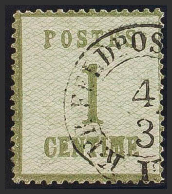 Yvert 1. 1870. 1 cts green bronze. Date postmark FELDPOST. MAGNIFICENT. Edifil 2010: 120 Euros