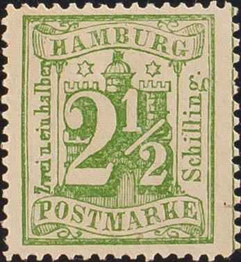(★)Yvert 16. 1864. 2 ½ s green. Excellent centering. MAGNIFICENT. (Mi14II 150 Euro)