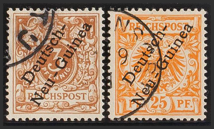 English Yvert 1, 5. 1896. 3 p light yellow chestnut and 25 p dark orange. MAGNIFICENT. (Mi1b, 5b 160 Euros)