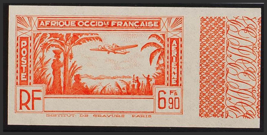 English ★★Yvert 5ab. 1940. 6´90 f orange, leaf edge. Without legend COTE D'IVOIRE and WITHOUT DENT. MAGNIFICENT. Yvert 2013: 130 Euros