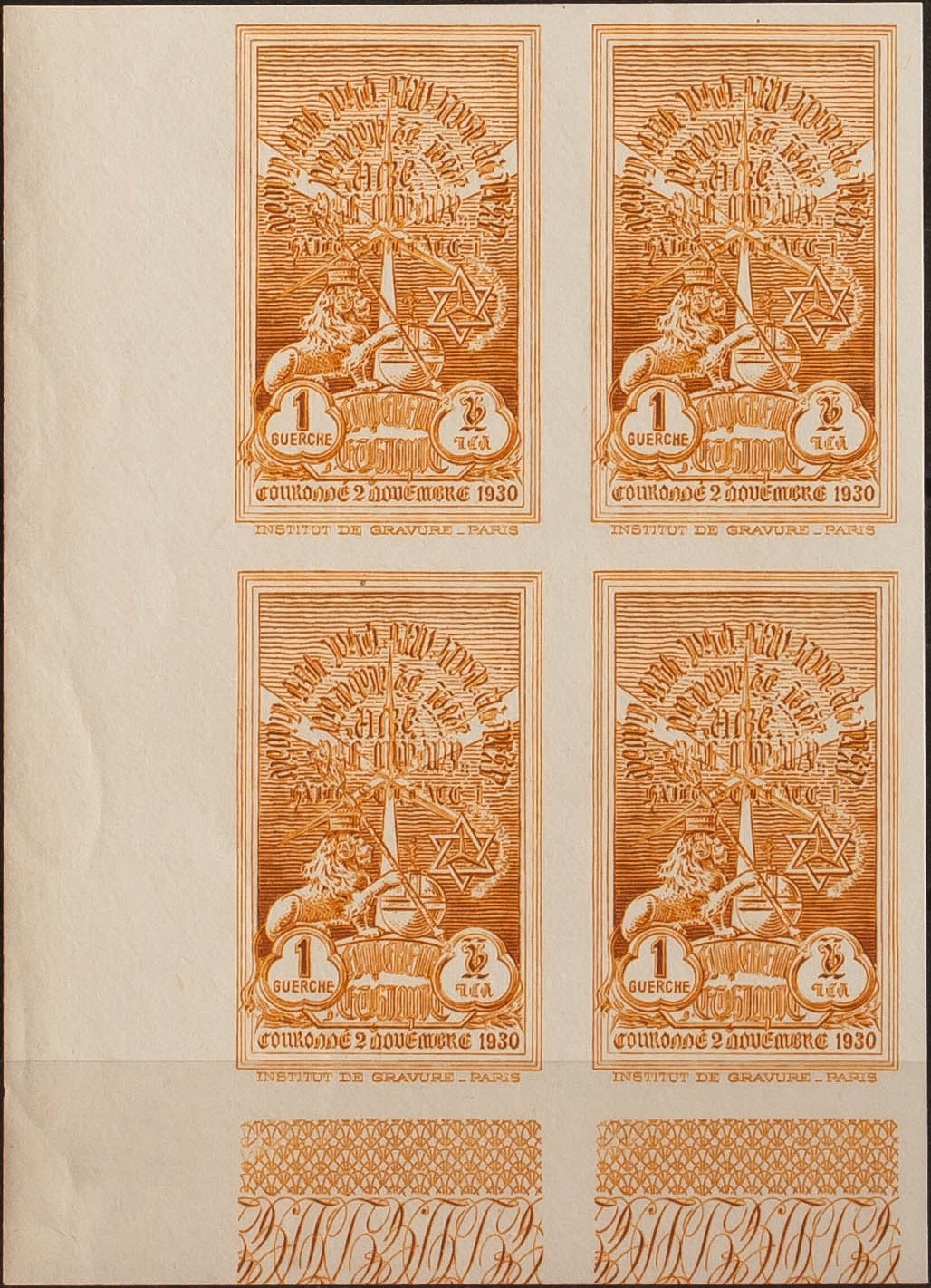 ★★Yvert 181(4). 1930. 1 g orange, block of four, sheet corner. NO TEETH. MAGNIFICENT AND RARE. Yvert 2014: +800 Euros