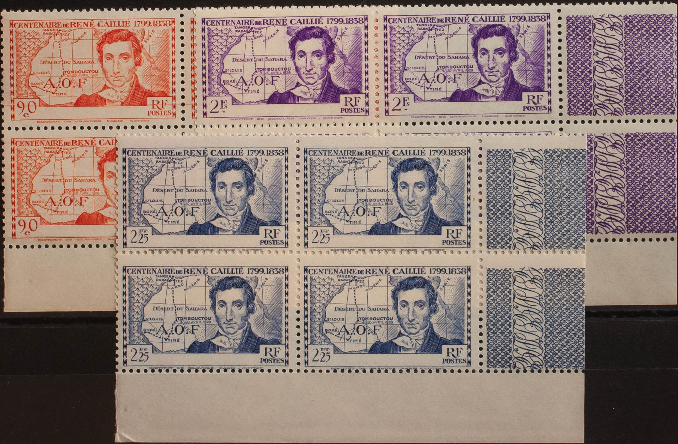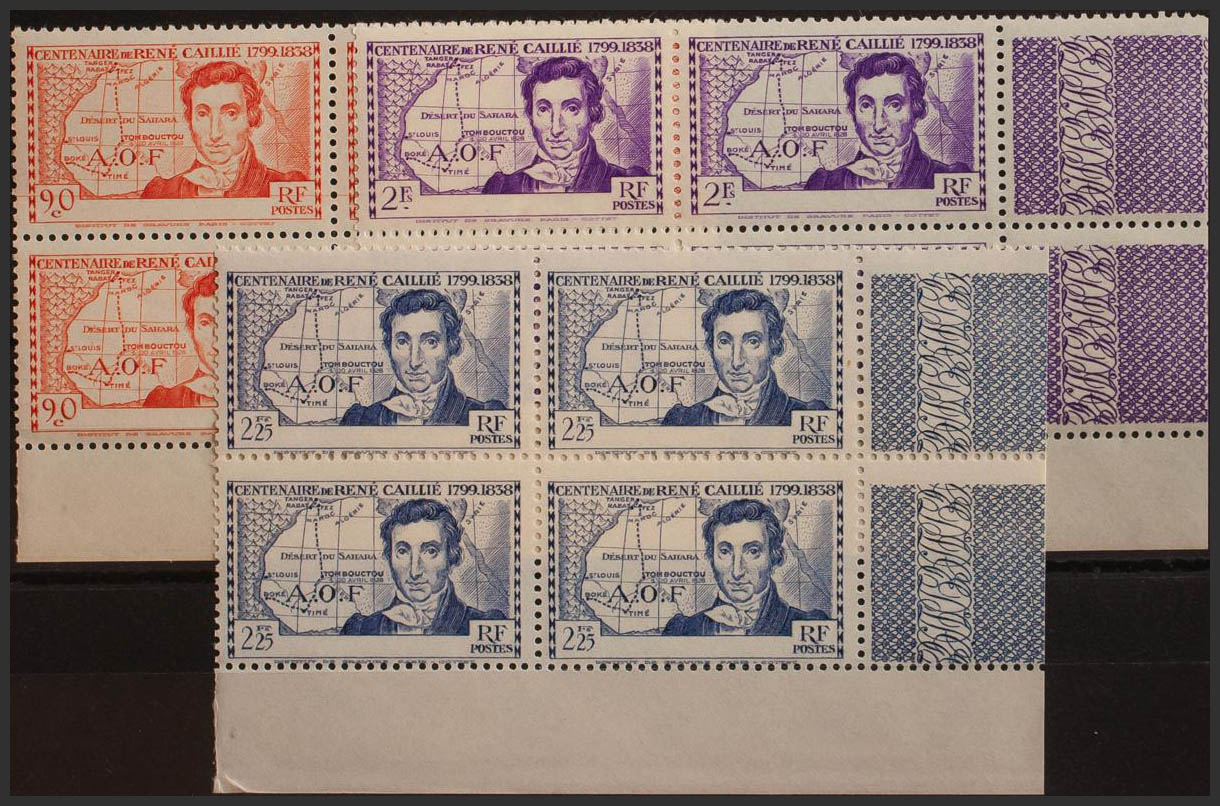 ★★Yvert 141/43a(4). 1939. Complete series, in a block of four. Without legend COTE D´IVOIRE. MAGNIFICENT AND RARE. Yvert 2013: 714 Euros