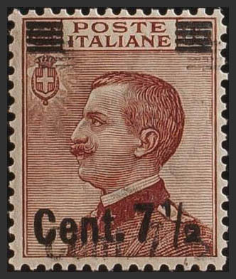 ★★Yvert 128a. 1923. 7 ½ cts out of 85 cts chestnut (Type II), well centered. DOUBLE OVERLOAD. MAGNIFICENT AND RARE. (Sassone 2006: 136bh, +500 Euros)