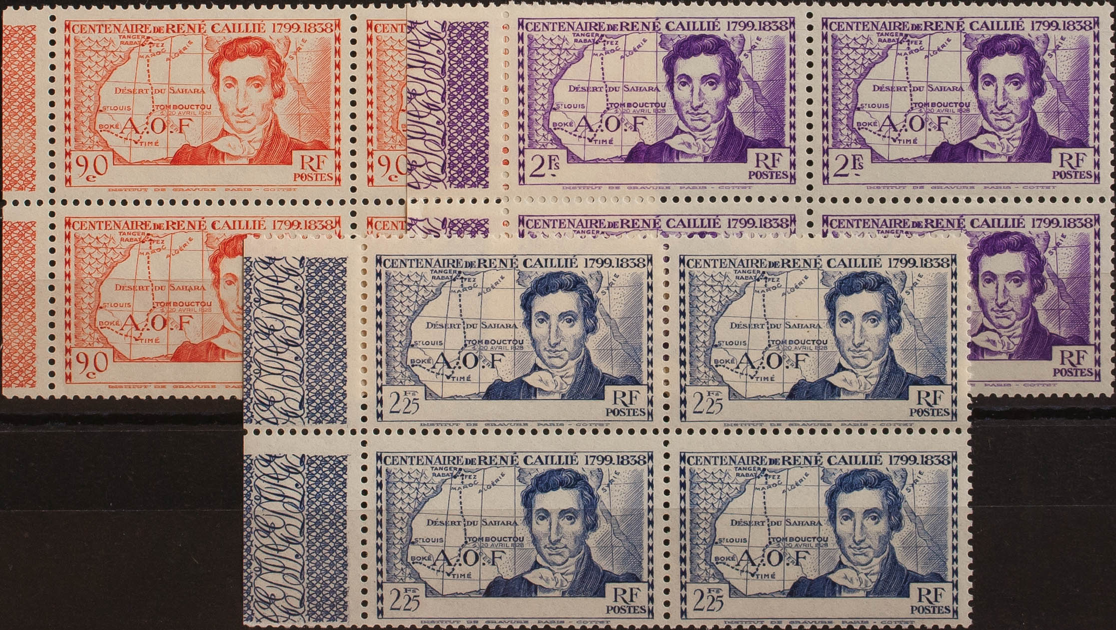 ★★Yvert 141/43a(4). 1939. Complete series, block of four. Without legend COTE D'IVOIRE. MAGNIFICENT AND RARE. Yvert 2013: 714 Euros