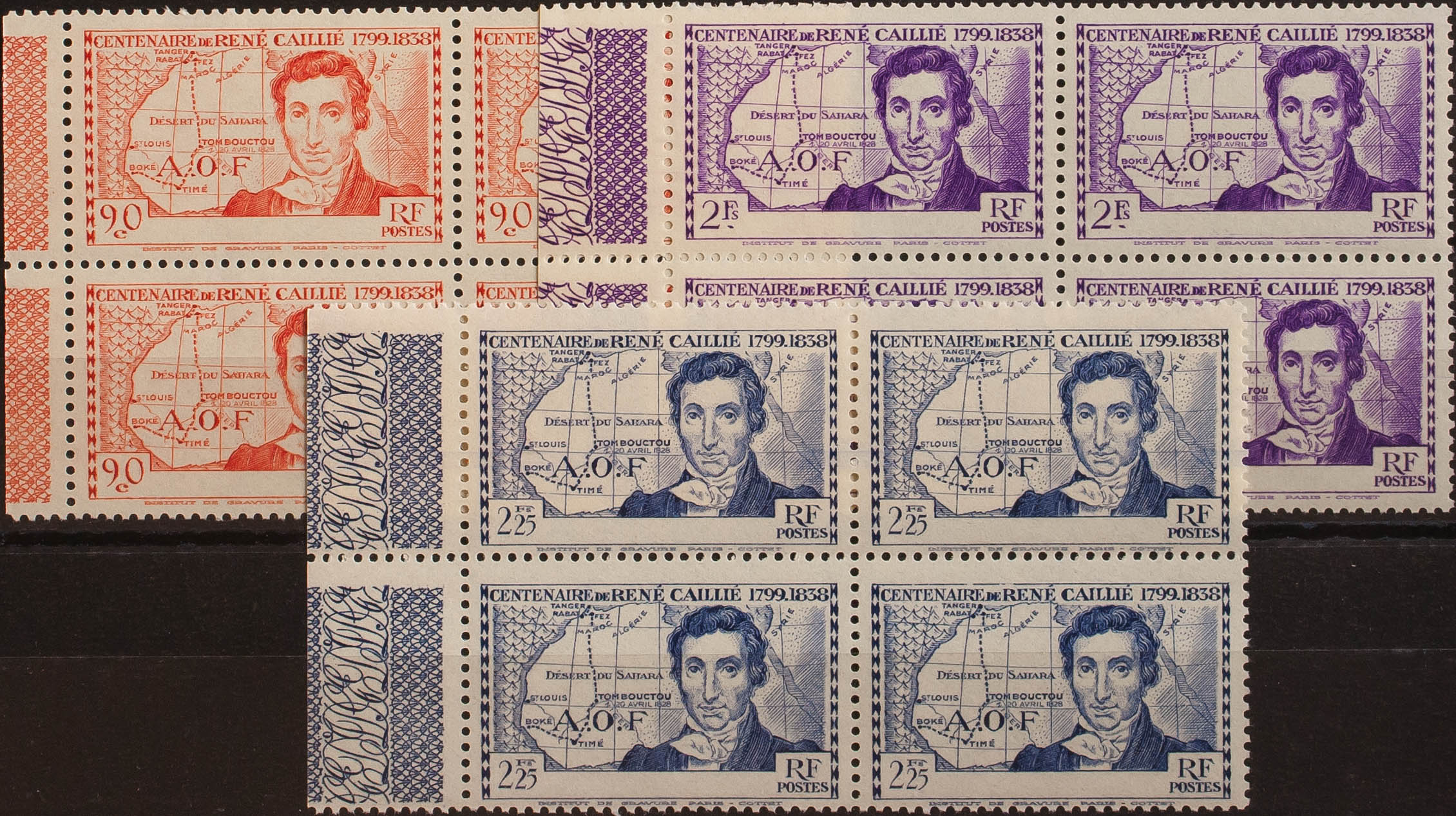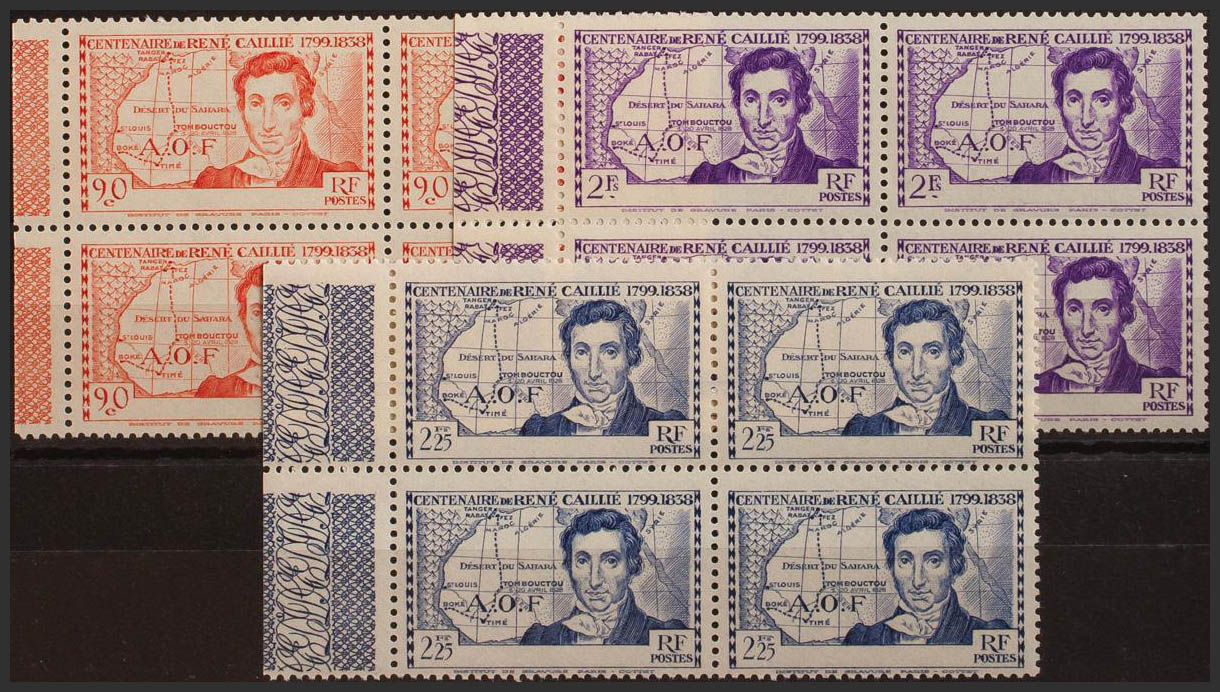 English ★★Yvert 141/43a(4). 1939. Complete series, block of four. Without legend COTE D´IVOIRE. MAGNIFICENT AND RARE. Yvert 2013: 714 Euros