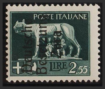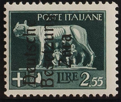 ★★Yvert 13. 1943. 2.55 green gray lira (Type I). MAGNIFICENT AND VERY RARE. (Sassone 13) Yvert 2013: 525 Euros