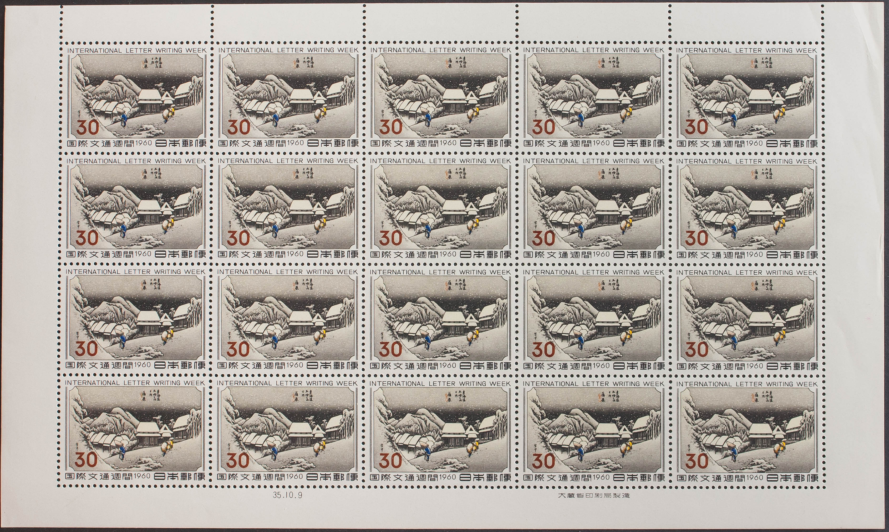 ★★Yvert 656. 1960. 30 and multicolour, minisheet of twenty stamps. MAGNIFICENT AND RARE. Building 2015: Edifil Euros