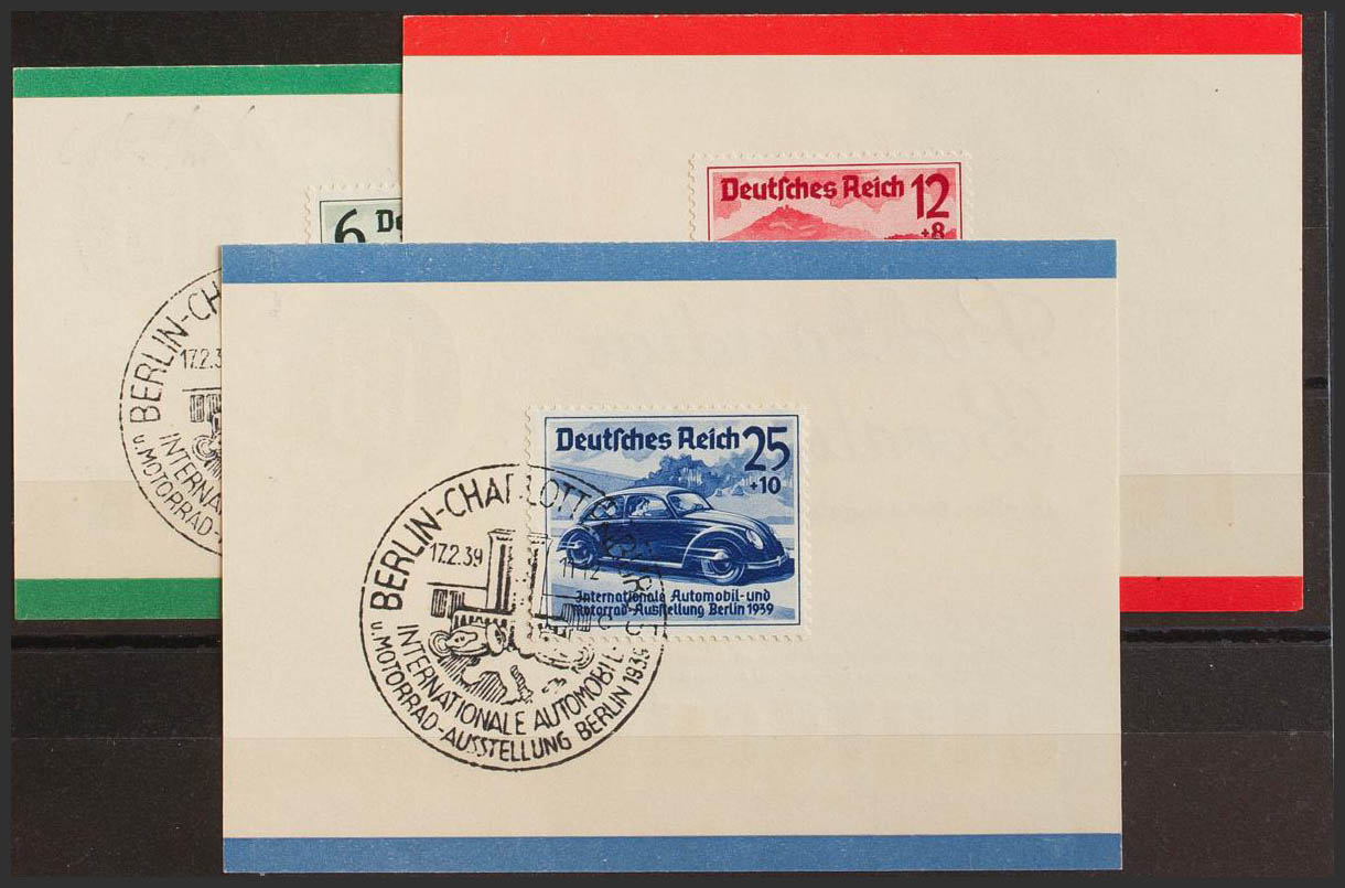 Yvert 627/29. 1939. Complete series, on advertising fragments (Deutsche Bank). Postmark BERLIN-CHARLOTTENBURG / INTERNATIONAL AUTOMOBIL. MAGNIFICENT. (Mi686/88)