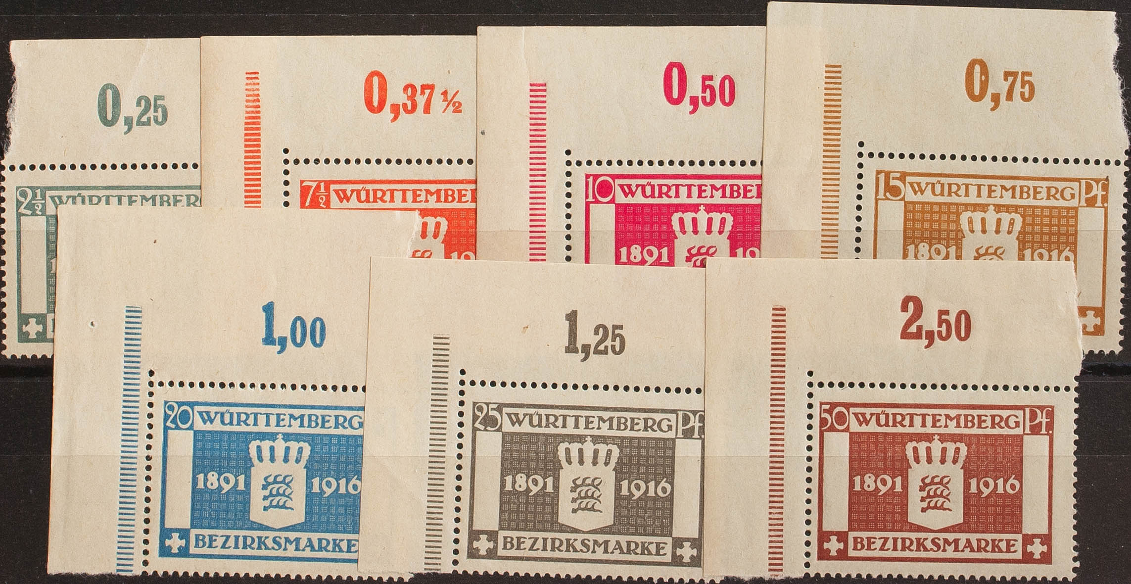 English ★★Yvert 71/77. 1916. Complete series, top sheet edge. MAGNIFICENT. (Mi123/29 50 Euro)