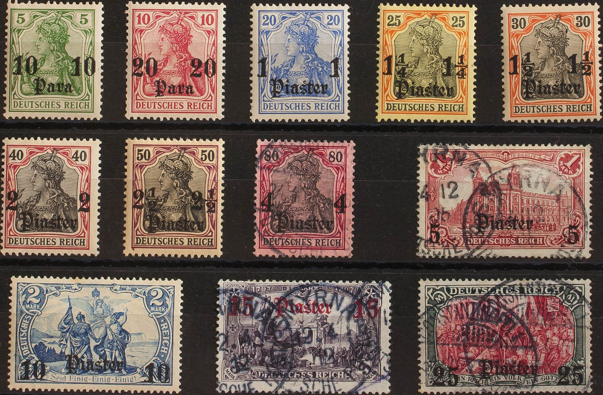 ★/Yvert 29/40. 1905. Complete series (80p, 1m, 3m and 5m postmarked). MAGNIFICENT AND RARE. (Mi24/35)