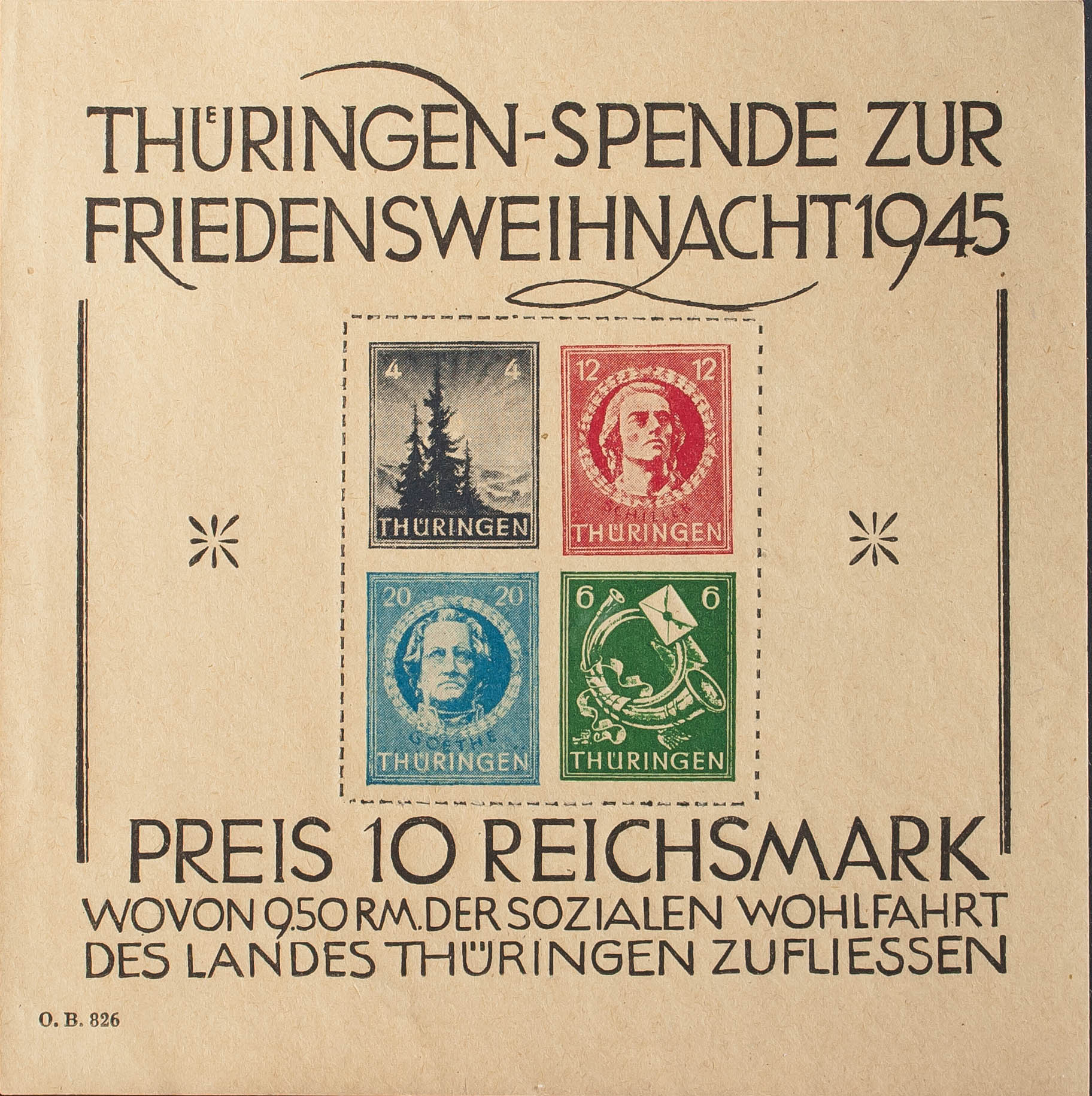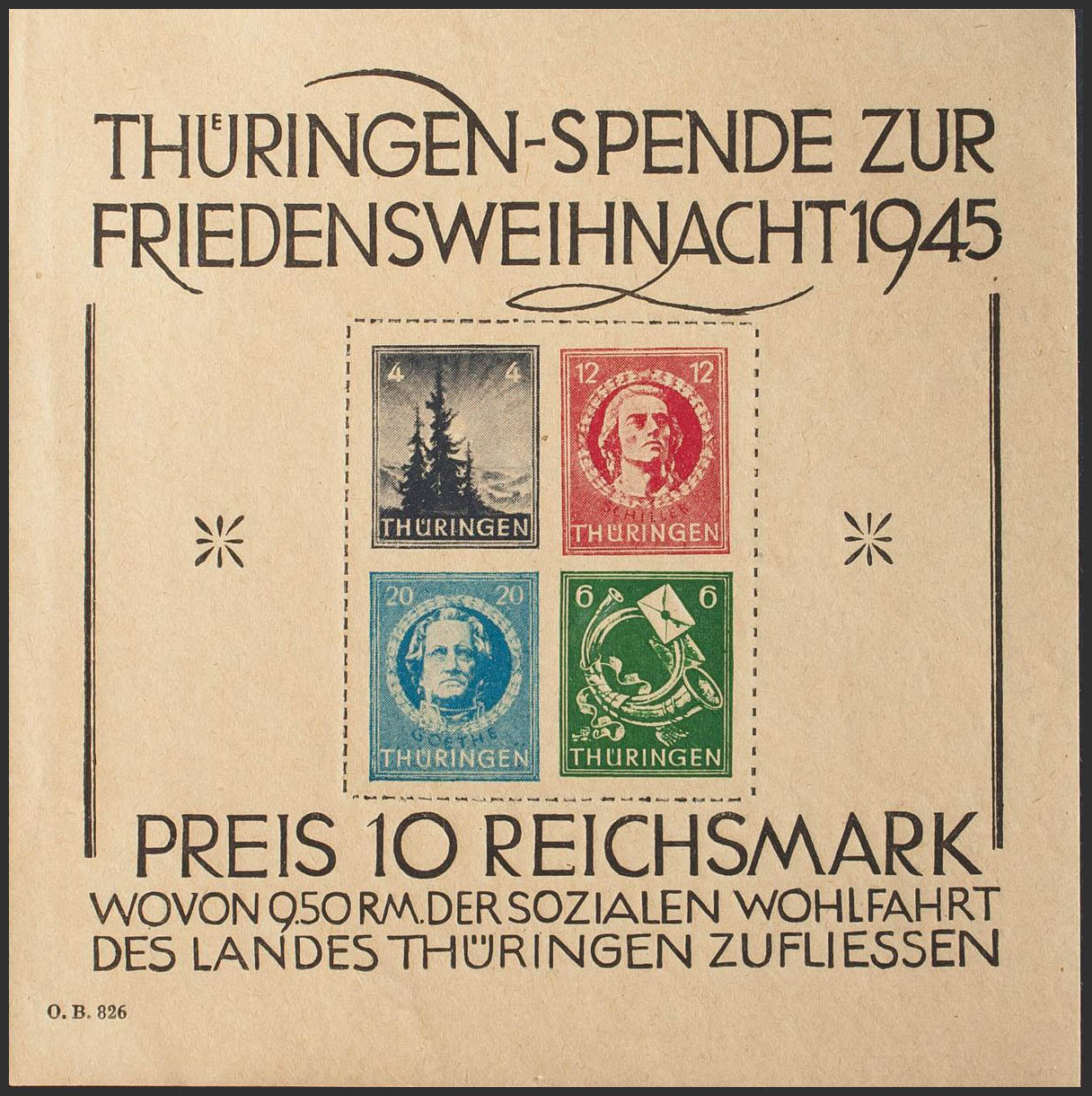 ★Yvert 2. 1945. Thuringia. Block sheet. MAGNIFICENT AND RARE. (MiBl2t) Yvert 2015: 1,500 Euros