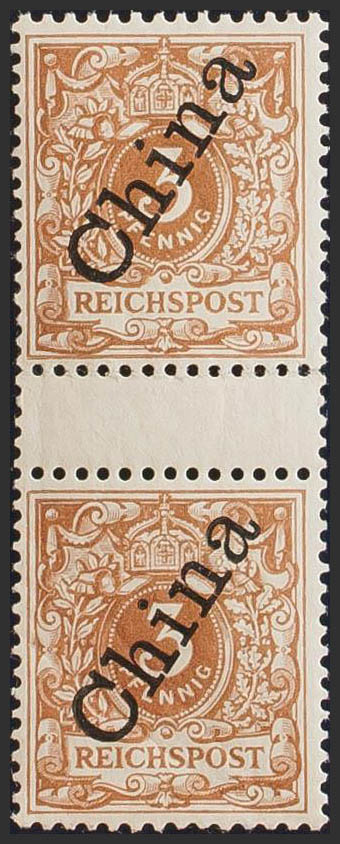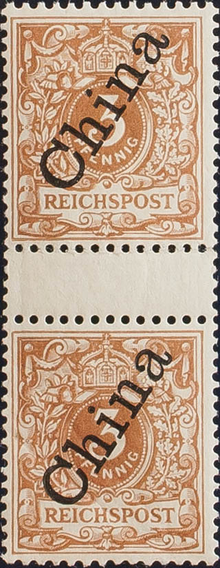 ★★Yvert 1A(2). 1898. 3 p yellow chestnut, pair INTERPANEL. MAGNIFICENT. (Michel 1IIb Zs, 160 Euros)