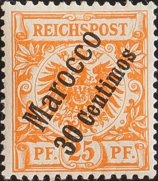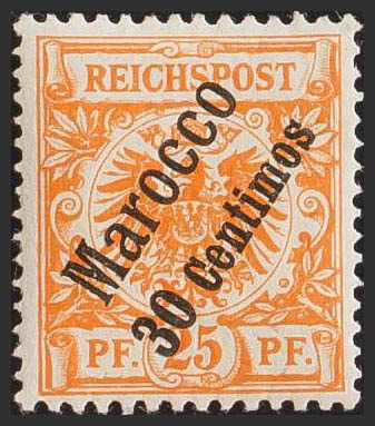 English ★Yvert 5. 1899. 30 cts on 25p orange. Variety POINT OF COLOR NEXT TO THE "M". MAGNIFICENT AND RARE. (Michel 5IV, 300 Euros)