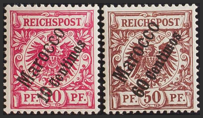 ★Yvert 3, 6. 1899. 10 cts over 10p red and 60 cts over 50p chestnut- GREAT. (Michel 3a, 6, 42 Euros)