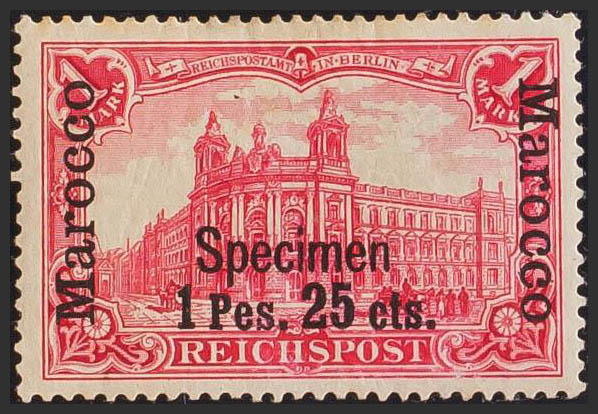 ★1899. 1p 25 cts over 1 m red (toned). SPECIMEN overload. NICE. (Michel 16I SP)